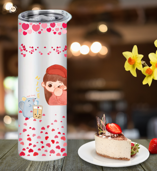 Hình minh họa cô gái dễ thương, Cốc cá nhân có nắp và ống hút, mẫu 1