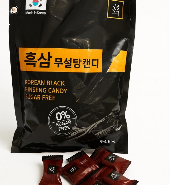 Kẹo Hắc Sâm Hàn Quốc- 1 thiết 16 gói, loại mềm, vị rượu nồng hơn , thích hợp với người muốn ăn kẹo mềm.